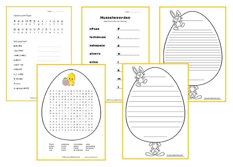 Misschien is het wat aan de vroege kant, maar ik kwam zulke leuke plaatjes tegen dat ik het niet kon laten om alvast wat werkbladen voor Pasen te maken. Dit zijn er vijf voor de midden- en bovenbouw.